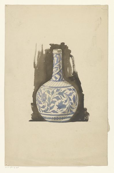 This is a design for a “Sometsuke Sencha Teapot and Cups,” made by Yamada Hōgyoku sometime in the first half of the 19th century. The print gives us some insight into the process and cultural significance that influenced its appearance. The artwork depicts a design for a tea set, made with porcelain decorated with cobalt blue underglaze. This ‘sometsuke’ technique, which involves painting the design directly onto the pottery before firing, highlights the natural qualities of the ceramic material itself, its smoothness, and its ability to take on intricate surface decorations. The print suggests more than the appearance of the final product. The method of production – from the preparation of the clay to the firing of the glaze – and the various skilled traditions of painting and calligraphy, each contribute to the cultural value of the tea set. It reminds us that the beauty and value of everyday objects lie not only in their aesthetic appeal but also in the labor, skill, and cultural practices that bring them into being.