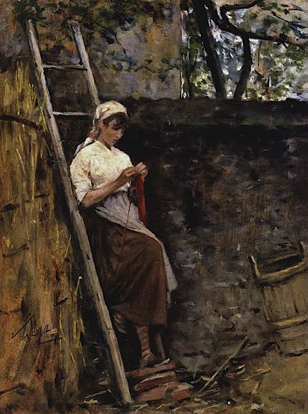 Jules Breton painted this scene of a peasant woman at rest in 1873, using traditional oil paints on canvas. The material qualities of the paint itself are key to understanding the work. Note the earthy, muted palette, dominated by browns, blues, and creams. Breton applied the paint with visible brushstrokes, creating a slightly rough, textured surface that evokes the harsh realities of rural life. The thick application of paint in areas like the woman's skirt gives it a sense of weight and volume, emphasizing the physical labor associated with her class. The artist's choice of subject matter is equally important. Breton elevated the everyday lives of rural laborers, depicting them with dignity and respect. This artistic decision was a conscious one, reflecting the growing social awareness of the working class during the 19th century. By focusing on the materials, process, and social context of this painting, we can appreciate the way Breton challenged the traditional art world's focus on idealized subjects, and instead honored the lives of ordinary people.