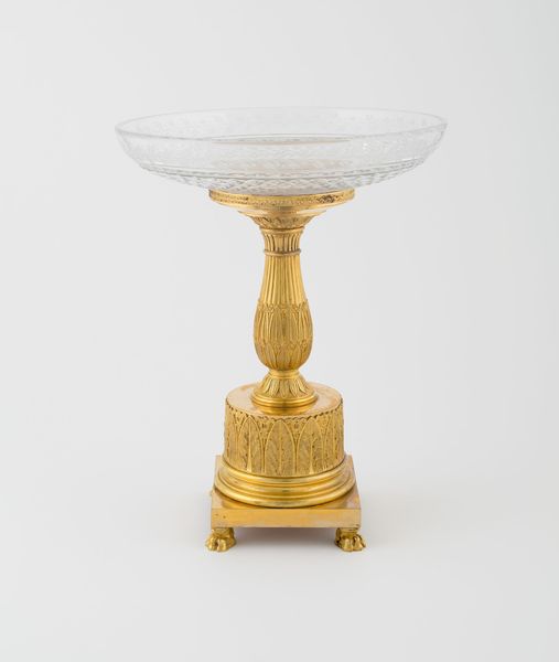 Editor: This is a "Tazza," a nineteenth-century mixed-media sculpture by Elkington & Co., currently residing at the Met. I'm struck by the almost excessive ornamentation and the mix of brass and what looks like heavily worked metal. How do you read a piece like this? Curator: I see this tazza as a fascinating artifact of 19th-century industrialization and Victorian aesthetics. Elkington & Co. was at the forefront of electroplating technology. The mix of materials suggests a desire to mimic the opulence of earlier periods, but using mass-produced techniques. Do you think this combination of precious and industrial processes affected its value or its accessibility? Editor: That’s a great point. The electroplating process feels almost like a democratization of luxury. It looks expensive, but knowing how it was made makes it feel different. Curator: Precisely! Consider the Victorian fascination with historical revivalism. This tazza embodies the paradox of that era—a longing for aristocratic grandeur produced through decidedly middle-class means. Its purpose was less about function and more about display of status, an aesthetic consumption. To further the discussion, how might viewing this object change in the 21st century given our renewed interest in artistic production processes? Editor: I guess in the 21st century, we're perhaps more interested in authenticity and handcrafted objects. Knowing this was mass-produced through electroplating might make some contemporary viewers appreciate it less, whereas others may value the historical process behind its construction. Curator: Exactly! It’s a document of its time. I think it speaks volumes about the shifting values embedded in art and manufacturing through time. Editor: I hadn't thought about it that way; now I see it less as a purely aesthetic object, and more of a commentary on 19th-century society itself. Curator: That's exactly the point. Thank you, that’s an interesting reading!