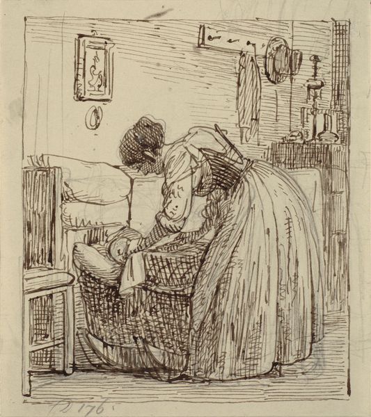 Editor: This delightful drawing, "Lille pige med paraply samt mindre dreng" by Lorenz Frølich, made in 1878 using pen and pencil, has a really charming, candid feel. The little girl wrestling with the umbrella seems so lifelike. What strikes you most about this piece? Curator: It's funny you say wrestling, because I think you've nailed it. This isn't a saccharine portrayal of childhood. It captures that clumsy, awkward energy of kids just figuring things out. Frølich, I think, offers a real, unfussy look into everyday life. I feel as though I am eavesdropping. Don't you find yourself inventing their story? Where are they off to? What's the weather like? Editor: Absolutely! It makes me wonder, with realism being a key movement then, was Frølich aiming for accuracy, or was he more interested in the emotional truth? Curator: I think the two went hand in hand for artists then. Capturing life authentically meant conveying not just the surface details, but also the feelings inherent in a scene. The textures in the sketch lend so much life to what could've been a plain illustration. You can almost *feel* the drizzle. The fact that it is unfinished adds to the feeling. What would be your response? Editor: I hadn't thought about that—the incomplete nature. The umbrella kind of obscuring her face and drawing my eyes to the peering child also helps convey this intimate tone you're alluding to. It's like a stolen glance. I think I see the work, now, as much more than an illustration of a "genre painting." Curator: Yes! It becomes more than that through that intimate connection with the moment. It feels less constructed, wouldn’t you agree? It makes it very timeless in its impact. Editor: Definitely. It makes me appreciate how much emotional depth can be conveyed with such simple lines.