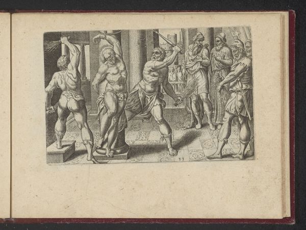 Curator: Editor: We're looking at "Christus aan het kruis genageld," or "Christ Nailed to the Cross," a print by Philips Galle from 1573. It's rendered in ink on paper through engraving. My initial feeling is one of stark brutality, emphasized by the crowded composition and the sheer number of figures involved. What do you see in this piece? Curator: Beyond the obvious religious narrative, I see a potent commentary on power, persecution, and the mechanics of oppression. Think about the historical context: 1573, the Dutch Revolt was raging. Galle, based in Antwerp, was witnessing firsthand the Spanish Crown's brutal suppression of Protestant dissent. Editor: So, the crucifixion isn't just a biblical scene, but also a reflection of contemporary political violence? Curator: Precisely. Consider the figures surrounding Christ. Are they simply carrying out orders, or do they actively revel in their actions? The composition implicates them – and us, the viewers – in the act. Galle invites us to question authority, to recognize how easily we can become complicit in injustice. How does the choice of engraving, a medium capable of mass reproduction, play into this? Editor: It suggests the widespread nature of oppression. By making it a print, Galle ensured this message could reach a wider audience, becoming a form of visual resistance. Curator: Exactly. And by situating it within the tradition of history painting, he elevates the subject to the level of important historical and political commentary. How does the contrast of light and dark influence your experience? Editor: It heightens the drama, drawing attention to Christ's suffering while simultaneously obscuring the faces of the oppressors, making them almost faceless agents of the state. It all speaks to broader struggles for freedom. Curator: That's a crucial point. Looking at this, it highlights the necessity to actively combat abuses of authority, regardless of the era. Editor: I see the artist's connection to broader, enduring themes of oppression and resilience so clearly now. It's unsettling, but it's a message that keeps echoing through time.