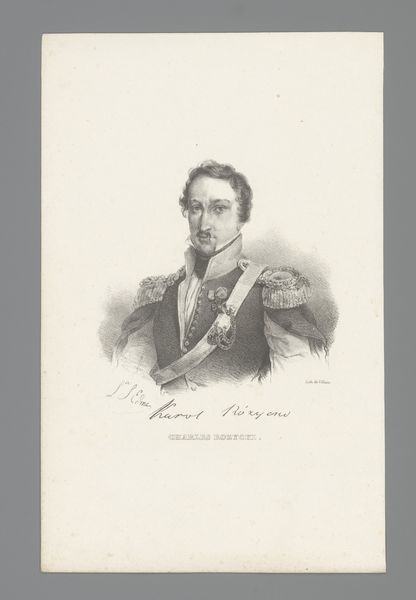 This is Joseph Schubert's portrait of Ferdinand-Philippe, Duke of Orléans. The black and white print shows the Duke in his military attire, a symbol of authority and status in 19th-century France. Portraits like these were tools that reinforced the sitter's identity. Ferdinand-Philippe, as a member of the Orléans royal family, was positioned between aristocracy and the emerging bourgeoisie. The portrayal of men in military garb has traditionally been used to convey power, authority, and nationalistic pride. Yet, this portrait hints at something more complex. There's an undeniable softness in the Duke's eyes, a vulnerability that humanizes him beyond his social standing. The work navigates the intersection of personal identity and public persona. While the Duke is presented in a manner befitting his status, the portrait subtly disrupts the conventional narrative of aristocratic masculinity. It reminds us that identity is not a fixed attribute, but a fluid and multifaceted construct shaped by social expectations and individual expression.
