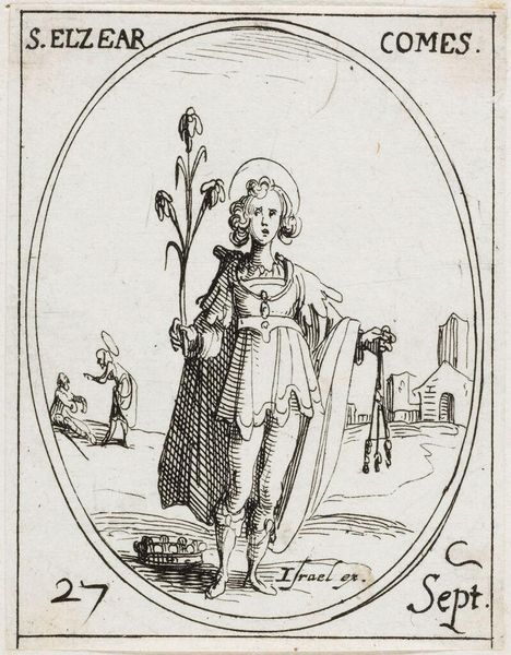 Editor: This is "Boy with Plumed Hat and Greyhound" by Joseph Wright of Derby, created around 1750, and it looks like it's done in pencil. I’m struck by how the dog seems to echo the boy's stance and demeanor. What do you make of the symbolism in this portrait? Curator: Well, the recurring image of the plumed hat immediately captures my attention, it represents nobility and status. Consider how clothing signals wealth and power – how do these contribute to the boy's representation? What memories or expectations are being conjured here? Editor: It feels like a statement about lineage. The plumed hat, his ornate suit and the purebred dog…they all suggest privilege and a bright future. But I wonder about the landscape behind them. It feels quite wild compared to the controlled image of the boy and dog. Curator: Precisely. Landscape and setting in a portrait always carry meaning. The dog also carries significant weight. Consider the symbolism of the Greyhound, the hunting dog. Known for speed and loyalty. It underscores his aristocratic connection to the land. How does that loyalty tie into the broader cultural moment? Editor: So the dog isn't just a pet, it's a statement about the boy's character and his connection to the ruling class. It’s like the artist is drawing connections between the boy's inherent qualities and his social standing. Curator: Exactly. Notice also how Wright plays with light and shadow, subtly hinting at a contrast between the constructed identity and perhaps a hidden nature, or the unknown potential that awaits him. Editor: That’s fascinating, the shadows almost hint at another layer of complexity, challenging the surface reading of wealth and status. Thanks, that makes me appreciate how every detail works together! Curator: My pleasure, paying close attention to those details is key to decoding an image's deeper cultural resonance.