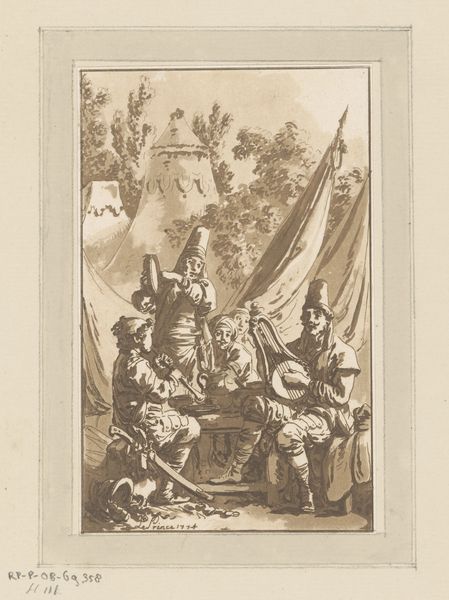 Jean-Baptist Leprince created this wash drawing, "Resting and Dancing Travelers Before a Tent," in the 18th century. Leprince was known for his exoticized depictions of Russian life, a fascination fueled by his travels to Russia in the 1760s. This work, like many others of its time, reflects the West's romantic, often inaccurate, view of other cultures. The figures, possibly imagined through a Western lens, are shown in a moment of leisure, dancing and resting near a tent. How does Leprince perpetuate or subvert stereotypes about non-Western people? What does it mean to represent other cultures, especially when the artist holds positions of power and privilege? The drawing serves as a visual document of cultural exchange and representation during a time of increasing global interaction, prompting us to reflect on the power dynamics inherent in looking, depicting, and interpreting cultures different from our own.