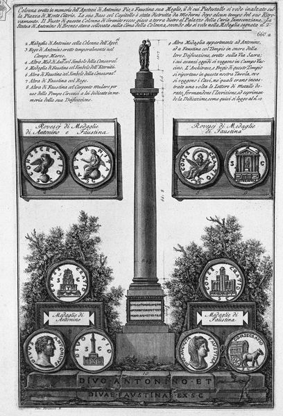 This print by Giovanni Battista Piranesi presents a detailed study of the Antonine Column, rendered in ink. The composition is structured around three distinct views of the column. Notice how Piranesi meticulously captures the spiraling reliefs that wind around the column's shaft. These are not just aesthetic embellishments, but carriers of historical narrative, reflecting the cultural and political milieu of ancient Rome. Piranesi, however, is not merely documenting; he is interpreting. By presenting the column in various states – original, as it was in the time of Sixtus V, and after restoration – he underscores a poststructuralist understanding of history as layered and subject to interpretation. The etched lines are both precise and expressive, suggesting a tension between objective recording and subjective experience. Consider the way Piranesi disrupts a singular understanding of the column, making it a site of ongoing cultural dialogue. This print invites us to reflect on how we engage with history, not as a fixed entity, but as a process of continuous re-evaluation.