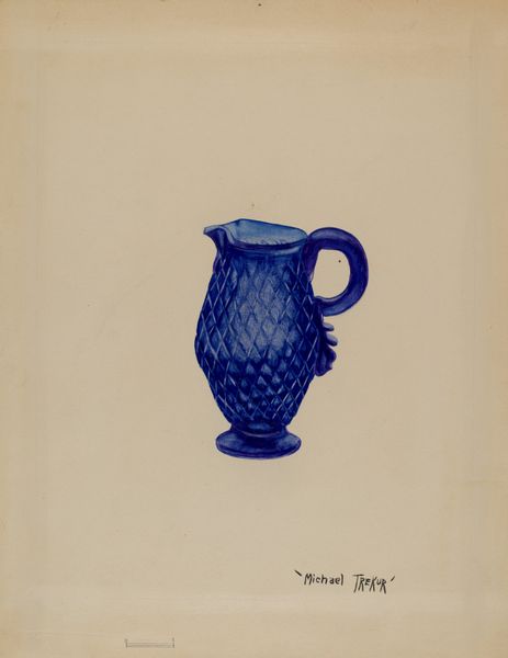 Janet Riza made this ‘Cream Pitcher’ with watercolour paint on paper, at an unknown date. The choice of watercolour is just perfect here, it gives that sense of light reflecting through glass, it's just so luminous, isn’t it? Look at how Riza has rendered the play of light on the pitcher's surface – it's so delicate, especially on those rounded diamond shapes. The way she has described the pitcher, using the transparency of the paint to build up those rich blues and purples, gives a real sense of volume and depth. She really captured the way light interacts with the object. Thinking about other artists who explored similar themes of domesticity and light, I am reminded of Morandi, who, like Riza, found endless inspiration in the simple, everyday objects around him. Art isn’t just about what you see, it’s about how you see.