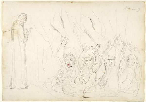 Editor: So, this pen and ink drawing is titled "Festnahme des Sextus Aurelius Victor durch den Zensor" – which Google tells me means "Arrest of Sextus Aurelius Victor by the Censor". Paul Egell created it in 1743, and it now lives in the Städel Museum. It's a flurry of figures contained within a very elaborate border – almost rococo in style! I find the scene pretty intense. What stands out to you about this piece? Curator: Intense is a perfect word, actually! And your feeling echoes what might've resonated with viewers back in the 18th century. Imagine the scene depicted! It looks to be straight out of some ancient Roman power struggle – dramatic clothing, lots of people and horses rushing by, almost operatic in a way! Though this isn't painting, this is one of Egell's more playful ink drawings and you might be able to tell a scene about morals and virtues is being communicated. How do you get that feeling? Editor: Well, given the title and the kind of official-looking central figures, it definitely feels like it’s trying to make some sort of grand statement. The rococo border only adds to the overall feeling. Almost like watching theatre unfold. Curator: Precisely! That's an excellent observation. Now, what if I told you that Egell may be communicating personal experiences as the Zensor captures the attention of a central individual? Do the border's dramatic flair or theatrical energy come into play any more with you? Editor: Absolutely! It completely shifts my understanding. It suddenly becomes so much more personal than a straightforward historical record, imbuing these public scenes with an undeniably interior viewpoint. I now see what the piece is all about. Curator: See what your own interpretation brings when you have freedom to your art?