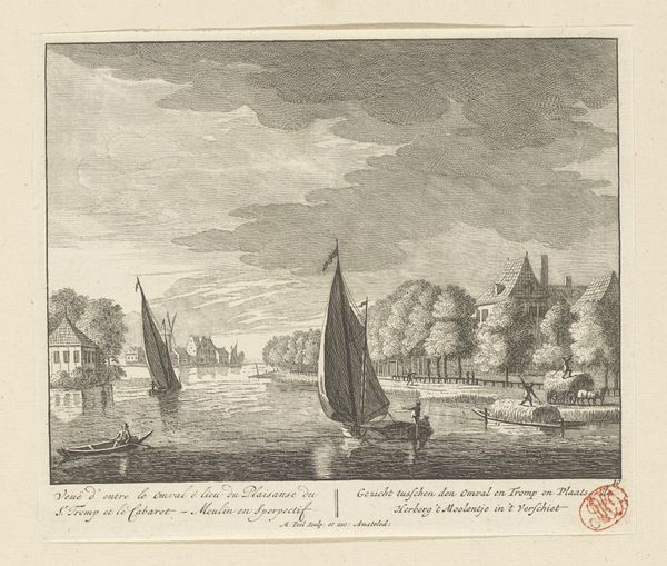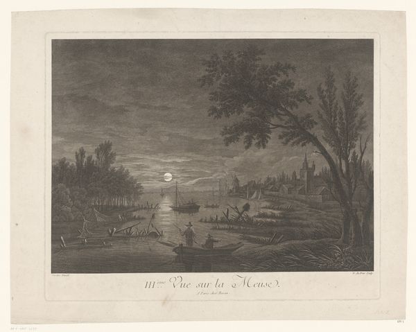 Jacques Aliamet created this print, "View of Boom on the Rupel," in the 18th century, translating a painting by Vander Neer into a widely accessible medium. The print itself becomes a social object, circulating images and ideas within the burgeoning art market of the time. The scene depicts a tranquil view of the Rupel river in Belgium, with Boom visible in the distance. Notice how the landscape is carefully composed, balancing the natural and the built environment. This aesthetic appealed to the sensibilities of the Enlightenment, reflecting a desire for order and harmony. Prints such as these helped to shape the public's perception of landscape, encouraging the appreciation of nature as a source of pleasure and civic pride. The print was made after a painting from the Cabinet of the Comte de Vence. The fact that a scene from the Count's collection would be reproduced and sold highlights the role of the aristocratic elite in setting artistic tastes. To fully understand the context of this work, one must delve into the history of printmaking, the development of landscape aesthetics, and the social structures that supported artistic production in 18th-century Europe.