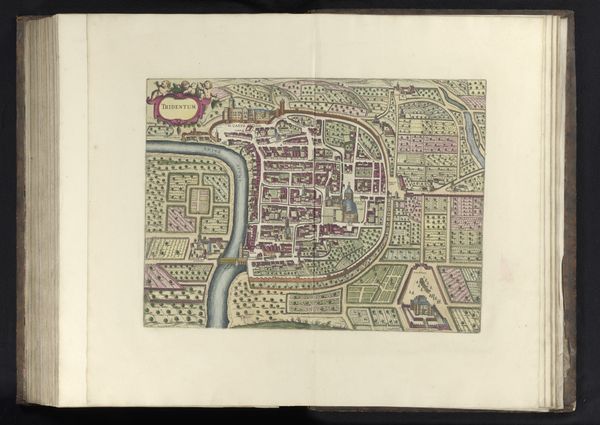 Curator: Let's turn our attention to this charming depiction of London. Known as "Plattegrond van Londen," it dates back to 1735 and presents a baroque vision of the city. Editor: What strikes me immediately is the delicate rendering. The watercolors give it such a soft, almost dreamlike quality, like looking at a memory. And the intense, orangey-red is fascinating. Curator: Indeed. Its creation is especially interesting because cityscapes like this became increasingly popular in the 18th century, reflecting the growing interest in urban planning and civic identity. The very act of mapping, of defining spaces, became a powerful expression of control and understanding. Editor: So, it's not just about showing where things are, but also making a statement? You're implying that representing urban environments like this says more about a society than one would first realize, that it acts a signifier to power and privilege? Curator: Precisely. London at the time was a hub of trade, political maneuvering, and cultural development. Depicting it visually reinforces its perceived importance in a global network and creates an ideal, perhaps even propagandistic view for consumption, almost creating a symbolic ownership through art. Editor: Right, a controlled version. Thinking of what lies beneath the veneer makes me question its function. There’s that lovely, ornate river snaking through… was it a symbol of purity and a bustling city? Now, what about the invisible London represented in this image? Curator: Certainly. There are tensions: London was marked with poverty, inequality and disease in the 18th Century. That reality of what lies beneath this drawing could well clash with its clean aesthetic and purpose of design. Editor: And maybe that’s what draws me to it: that subtle tension between what's shown and what isn't. All of art history considered, the relationship between social reality, artist intention and final output makes any encounter truly unique. It’s nice to muse and feel, knowing that these artefacts allow us this window in time and insight.