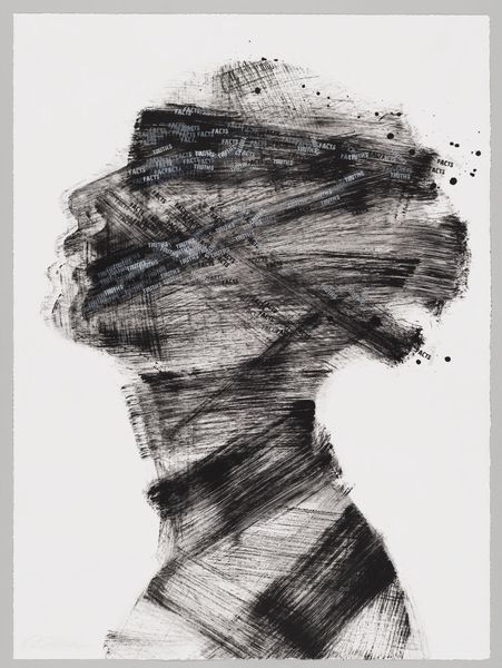 Editor: This ink drawing, "Plunge," by Alfred Freddy Krupa, created in 2020, really strikes me with its dynamic energy. The contrast between the stark black and the swirling grey lines is quite captivating. What's your perspective on this piece? Curator: For me, the real intrigue lies in the artistic process. The application of ink - look at those thick, gestural strokes and then the controlled, almost frenetic, circular motions. How does the choice of ink as a medium impact your perception, knowing its historical roots and inherent qualities? Editor: I hadn't considered the historical aspect deeply enough. The simplicity of ink almost makes it feel immediate, raw, connected directly to the artist's hand, not mediated by complex industrial processes. Curator: Precisely. Consider the cultural implications of that choice. Ink has centuries of tradition, particularly in East Asian art. Does Krupa engage with or challenge that history through his abstract style? Is it reverence, subversion, or something else entirely? Furthermore, how do you think the "abstract" style helps make statements on labor when the act of production becomes the focus? Editor: That's a compelling point. By stripping away representational subject matter, it throws the material and the artist’s mark-making into sharp relief. It becomes less about *what* is depicted, and more about *how* it’s depicted. I think it also makes me think more deeply about the relationship between effort and product - how is he expending his labor, and what object is it creating? Curator: And isn't that revealing? Think about what the artist decides to show you about the making of "Plunge" versus a finished painting with no visible process. Editor: I agree. Now I am beginning to understand that the focus on the materiality draws attention to the artistic creation's process and background as much as the work itself.