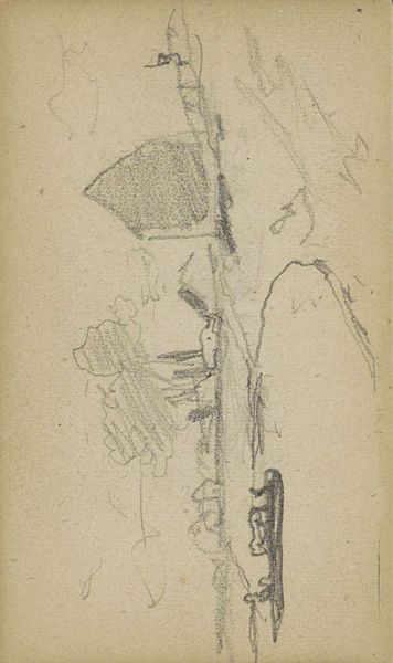 Curator: Welcome to the Rijksmuseum. We're standing before Isaac Israels' "Straatgezicht en een vrouw met een kom," a drawing that likely dates between 1886 and 1934. Editor: Well, my first impression is one of fleeting observation. There's an ethereal quality, an incompleteness that's really captivating. The sketchwork suggests a quickly captured moment. Curator: It's rendered in pencil and ink. Knowing Israels' fondness for depicting everyday life, especially in urban environments, it's plausible this was jotted down in a sketchbook while he was out observing the social landscape. We can speculate about his interactions within that society. Was he attempting to reveal a truth or just working to improve his technical skills in observation and line? Editor: Interesting, but for me, it’s about the composition. Look at the stark contrast between the defined upper portion and the almost vacant lower section. That asymmetry creates a compelling visual tension. It begs the question, is the foreground merely a structural element, or does it hold symbolic meaning by what is *not* there? Curator: I would argue that the materiality points to the accessibility of art during this period. Paper and pencil being readily available, especially when juxtaposed against oil paints used at that time. These are tools accessible to the working class. And it can show a democratization of artistic expression if studied through that lens. Editor: I see your point. And even beyond the economic side, notice how the rough lines give the piece a sense of spontaneity. The figure of the woman with a bowl is captured so efficiently, her posture and weight hinted at with minimal strokes. How the artist achieves that illusion of form with so little, intrigues me. Curator: It does present questions around labor and class. What is in the bowl, is it alms or something that has value and is it hers? What commentary is he trying to make on poverty? This era saw increasing industrialization. Editor: Perhaps the emptiness below emphasizes the uncertainty and instability she faces in her life. Either way, Israels captured a unique blend of sensitivity, directness, and modernism, wouldn't you agree? Curator: I suppose in this image there is a direct connection to the common man with common tools, and one could infer social challenges within this particular time. It's a potent glimpse into Israels' artistic process and, possibly, the societal realities he sought to capture. Editor: Indeed, and it underscores how much meaning can be conveyed through the simplest of means, and its visual syntax, perhaps speaks to those living today who find so much emotion within minimal tools of artistic creation.