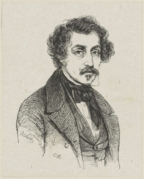 Editor: This is "Portret van Jan van Ravenswaay," a drawing or engraving by Adolphe Frédéric Nett from sometime between 1832 and 1900, currently residing at the Rijksmuseum. It feels so detailed for something made with such simple materials, almost photographic in its precision despite clearly being Romantic. What draws your eye when you look at this portrait? Curator: Oh, absolutely, the precision is deceptive, isn't it? Like capturing a butterfly with a feather – delicate yet intentional. For me, it's the dance between the ideal and the real. This is a Romantic portrait, so there’s a degree of idealization at play – the swept-back hair, the elegant clothing, but then you look at the eyes... Do you see a hint of melancholy there? A kind of "been there, seen that" wisdom? That’s what fascinates me – that little crack in the façade where humanity peeks through. It’s not just a pretty picture; it’s a glimpse of a soul, wouldn’t you agree? Editor: I see what you mean. He's not just a handsome face; there’s something deeper, perhaps a bit world-weary. Is that typical for portraits of this period? Curator: It’s definitely a thread that runs through many portraits of the Romantic era. They were fascinated with the individual, with emotion, with the inner life, for good and ill. They weren’t just documenting faces; they were trying to capture a sense of inner experience. It makes me wonder what Ravenswaay's life was like. Was he as contemplative as he appears here? It also makes you question whether or not an engraving such as this might capture more than just physical attributes. It can really spark the imagination. What does it conjure up for you? Editor: I think I get a sense of the sitter's era now that you point it out. I'll never see portraits the same way again! Thanks for opening my eyes. Curator: The pleasure was all mine. Art is never quite the same when we share in this way, don't you think?