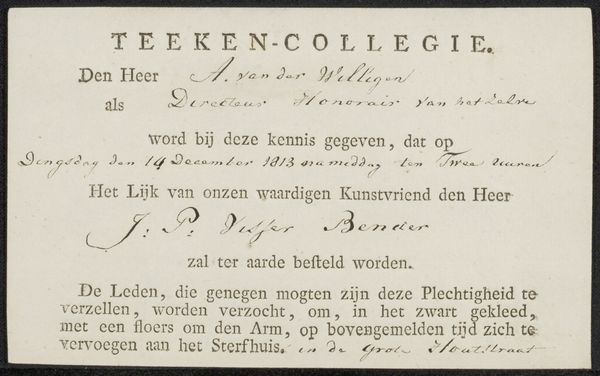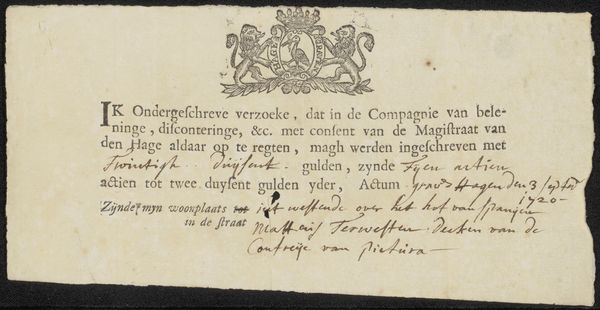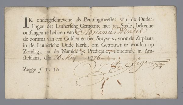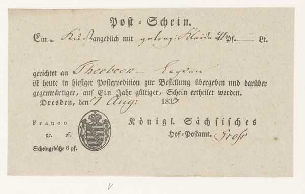 This is "Attestatie van Gesina Garretsen bij de gereformeerde kerk te Amsterdam," from 1825. It is an anonymous document made with ink on paper. The document presents a formal arrangement of text, dominated by the central block of assertive, declarative script. Note the contrasting handwritten flourishes that punctuate the rigid structure of the text. They introduce a personal element into an otherwise official pronouncement. The seal, with its heraldic imagery, anchors the document. The careful construction suggests an attempt to convey authority. Yet, the integration of handwriting creates a tension between the institutional and the individual. This interplay destabilizes the document’s singular meaning. We are invited to question the relationship between official decree and personal affirmation. Consider the delicate balance achieved here, between the objective and the subjective, the formal and the informal. It reflects a broader cultural negotiation between institutional power and individual agency. Art, after all, invites us to look more closely at the structures that govern our perceptions.