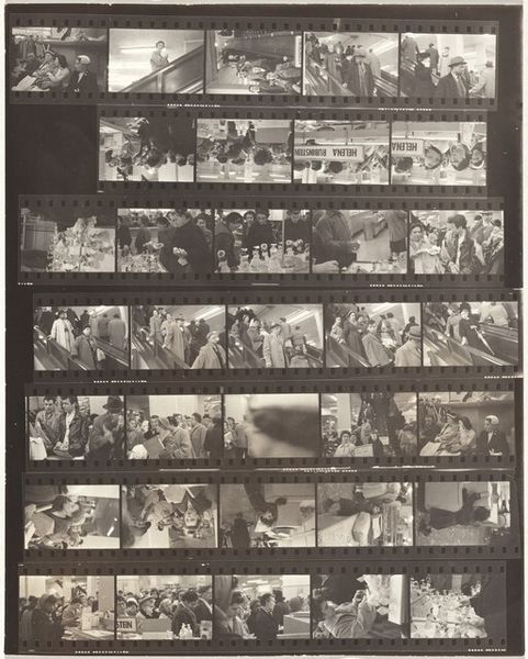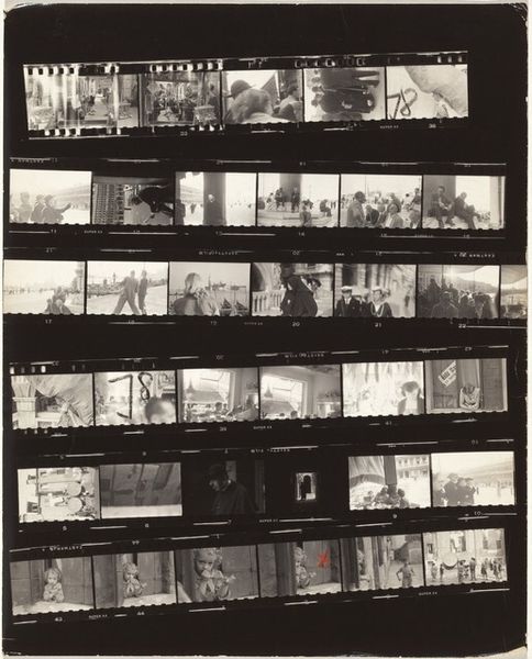 Robert Frank made this gelatin silver print, titled Guggenheim 123--New York City, sometime during his lifetime. It's a strip of negatives, a kind of outtake or visual note from his practice. You know, like when painters pin up sketches around the studio. There’s a transparency to the film itself that allows light to transmit and expose the image. It is a direct, unfiltered view into the artist's process. The dark lines separating each frame create a rhythmic grid. It's like a series of windows looking out at the world, or maybe mirrors reflecting Frank’s own observations. Look at the images of the crowds of people. It's a sea of faces, each one a story. But they're also blurred, indistinct. It makes me think about what it means to see, to really see, and how much we miss in our quick glances. It reminds me of someone like Gerhard Richter, in the way he makes paintings out of blurry photographs, turning a moment into something both specific and elusive. Ultimately, this is a conversation between the photographer and the world.