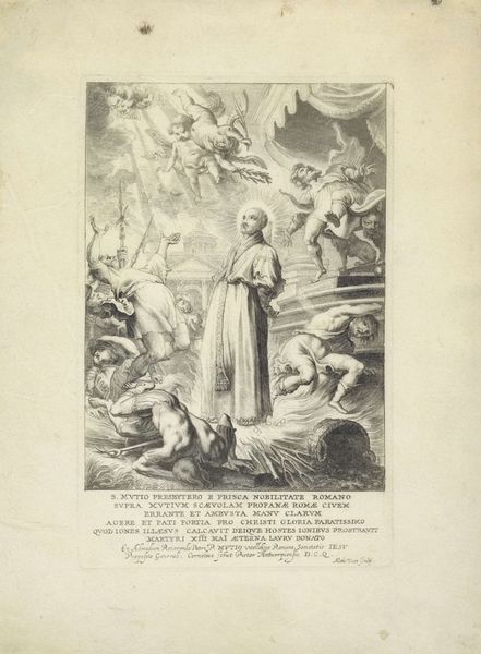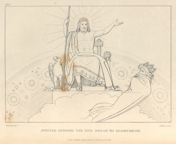 Curator: Looking at John Flaxman's "The Virgin Mary," it strikes me first by its spareness. The scene is rendered with a minimal, almost ethereal line. Editor: Indeed. Flaxman, who lived from 1755 to 1826, strips away the ornate details to reveal the core essence of the divine feminine. The radiating lines evoke both the halo and a cage, the Virgin a figure of worship and constraint. Curator: I see what you mean about the cage. The cherubic figures seem to float around her, at once adoring and perhaps slightly trapped within that celestial sphere. It does leave me wondering about the price of such iconic elevation. Editor: The symbolic language speaks volumes. The stars encircling her head are a classic emblem of Mary, representing her purity and status as Queen of Heaven, a guiding light in the darkness, yet also setting her apart. Curator: The simplicity is what hits me the most, especially because this ethereal rendition leaves me with a feeling of both peace and disquiet. Editor: Yes, it's a study in contrasts, a visual poem inviting us to contemplate the complexities of faith and iconography.