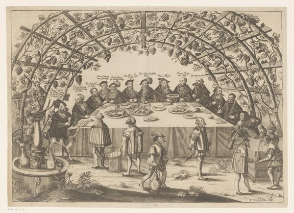 P.C. Skovgaard created "Festen på skydebanen," or "The Shooting Range Party," as an engraving. Skovgaard was a pivotal figure in the Danish Golden Age, a period marked by a burgeoning national identity and cultural pride. This image depicts a formal banquet, but it's more than a social gathering; it's a display of civic identity and community. The men in attendance, all dressed in formal attire, represent the bourgeoisie of the time, a class deeply invested in shaping Danish society. Their presence here speaks to the growing importance of civic associations and the consolidation of power within certain segments of society. The decorations and statues might evoke a sense of classical ideals, but these are reinterpreted through a Danish lens, reflecting the national romanticism prevalent at the time. This celebration is a statement—about who belongs, who leads, and whose vision of Denmark is being celebrated. Skovgaard captures not just a party, but a moment in the ongoing construction of Danish identity.