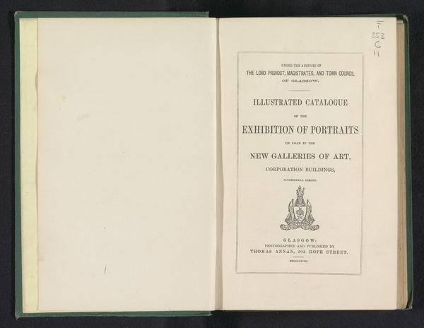 Curator: This print, dating from around 1890, presents the title page to "The Plays of William Shakespeare," edited by Thomas Keightley. It’s held here at the Rijksmuseum. What are your initial thoughts? Editor: The first thing that strikes me is the rigid formality. The typography, the symmetrical framing… It speaks to a particular kind of bourgeois reverence for Shakespeare as a cultural commodity. Curator: Interesting take. For me, the immediate observation is the interplay of textures between the paper itself, presumably a somewhat mass-produced stock given the intended audience and publication scale, and the intricacy of the typographical elements. Note the use of different fonts and the decorative embellishments within the "W" and "S" themselves. Editor: And that ornate crest right above "In Four Volumes." It really underscores the socio-political function of texts like these, creating and maintaining a certain class distinction through cultural capital. Shakespeare wasn't just for everyone, was he? Curator: Indeed. Also consider the physical labor and resources required to produce such a volume. The sourcing of the paper, the craftsmanship involved in typesetting – it all points to a sophisticated industrial infrastructure geared towards mass cultural dissemination. Editor: Mass, but controlled. Think about the editor, Keightley, and his role in curating a specific version of Shakespeare for public consumption. He wasn't simply presenting Shakespeare unfiltered. The entire edition shapes how Shakespeare's plays were read and understood within the social context of late 19th-century London. The publishing house too, J. S. Virtue & Co. – they wielded considerable power in shaping tastes and promoting particular interpretations. Curator: Precisely. The print invites us to contemplate the materiality of Shakespeare's legacy and its transmission through carefully manufactured objects. It's not just the plays themselves but the book, the print, as a material object, which gives the written text its real weight. Editor: Absolutely. This single title page is a window into a complex web of social, economic, and artistic forces, far beyond just the genius of Shakespeare himself. Curator: A telling reminder of the myriad hands, machines, and systems that shape our experience of even the most timeless art.