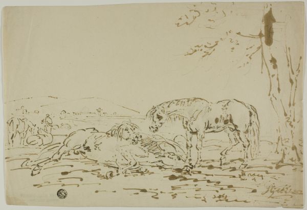 This is a pen and ink drawing of horses in a landscape, created by the Scottish artist John Burnet sometime in the early to mid-19th century. It’s a quick sketch, not a finished picture. During this period, the British art world was increasingly interested in images of rural life, often romanticising it. Landseer’s paintings of stags and dogs were hugely popular, for example. It’s easy to see this drawing as a simple rural scene, of a type that had become a hot commodity by this time. But Burnet, and indeed Landseer, were also interested in the relationship between humans and animals in a rapidly industrialising nation. Horses, like those shown here, were crucial to agriculture and transport but were gradually being replaced by machines. Further research into Burnet’s other works, and the collecting habits of his patrons, might reveal more about the social context of this deceptively simple drawing.