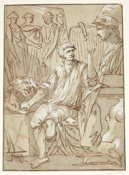 This drawing of Pilate was created by Peter Paul Rubens, and is now at the Städel Museum. The scene is rendered in sepia ink, with dense hatching that gives the composition an almost palpable weight and texture. The figure of Pilate, enthroned, dominates the space through the sheer volume of his form and the ornateness of his attire. Rubens employs a structural technique here to convey a sense of authority and perhaps moral ambiguity. Pilate is positioned at the apex of a triangular composition, visually reinforcing his power. The surrounding figures are sketched with varying degrees of detail, which draws our attention to the central figure but also to the psychological drama unfolding around him. The lines are not just descriptive; they build a complex interplay of light and shadow that adds depth. Rubens uses line to create a visual rhetoric. This drawing doesn't just depict a biblical scene; it uses its formal elements to explore themes of power, judgement, and human fallibility.