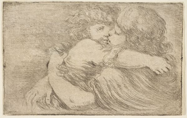 Editor: This is "To barnehoveder," or "Two Children's Heads," a pencil drawing by Hendrik Krock, likely from the late 17th or early 18th century. It's so delicate; I'm really drawn to the softness of the lines. What strikes you when you look at this? Curator: I see a study in process and access. Pencil, at this time, wouldn't have been considered a high art medium like oil paint. Examining this work from a materialist perspective prompts us to consider Krock’s access to these materials, and who the drawings were made for. Was this a preparatory sketch intended for a larger composition, a means to quickly render form, or something else entirely? Editor: So, you're saying the *kind* of material impacts how we see it? That’s interesting – I tend to just think about how it *looks*. Curator: Precisely. Furthermore, we can consider the labor involved. A detailed drawing like this demonstrates considerable skill and time invested, even if intended as a preliminary work. Consider the social context: who had the time and resources to produce or acquire such images? This work might function to ennoble its sitters by rendering them akin to antique statuary; it may have served as tokens or patterns for production and dissemination. Editor: I hadn’t thought about the labor behind it, or what pencils even *meant* then. It does make you wonder about its purpose beyond just being a pretty drawing. Curator: Right. And how that purpose is tied into class, skill, and systems of production that went far beyond this singular artwork. We move past aesthetics and confront the practical elements. Editor: So, looking at the art as an object shaped by materials and social forces really opens it up. It makes art history feel much more connected to, well, *everything*. Curator: Exactly. By analyzing these connections, we get a deeper understanding of both the art and the society that created it.
