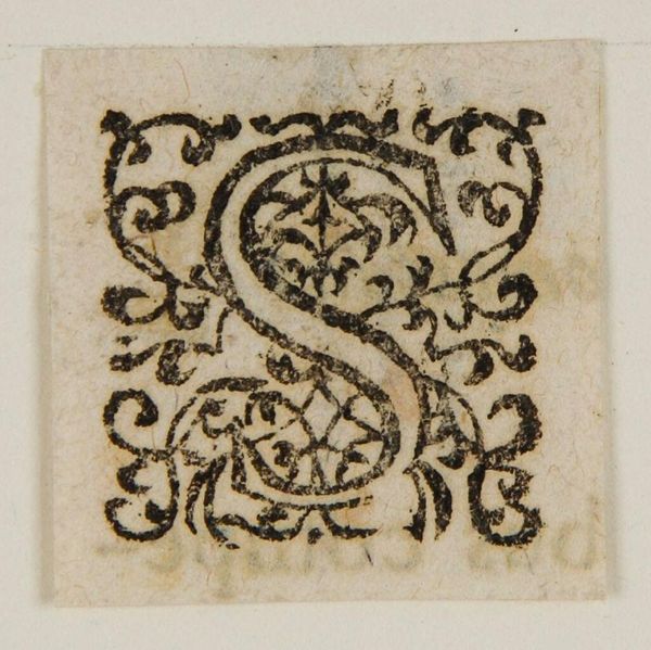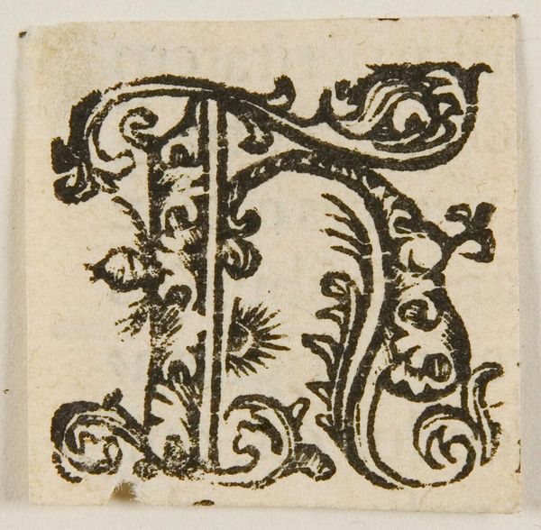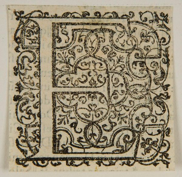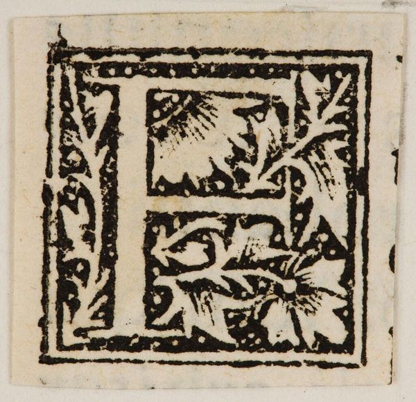 Curator: Here we have a print titled "Letter H," an anonymous piece held at the Harvard Art Museums. Something about it feels so medieval and mysterious to me. Editor: It reminds me of illuminated manuscripts, all that painstaking detail shrunk down. I find myself wondering, what sort of laborious process was used to create this block print? Curator: Perhaps a woodcut, given the visible lines and texture. The 'H' is so dense with vegetal forms, it seems almost to grow before your eyes. Editor: It's as if the letter itself is a miniature ecosystem! I'm also thinking about who might have commissioned it, and in what context it was meant to be used? Curator: Possibly part of a larger alphabet series, or a custom initial for a very fancy book. The repetitive nature of this initial design is interesting when considered with the labour to produce these in bulk. Editor: True, it highlights the intersection of art, function, and the somewhat hidden labor involved in these objects that often seem purely decorative. I hadn't thought about it that way. Curator: There's a whole world embedded in this single letter. Editor: Makes you look at your own alphabet a little differently, doesn't it?