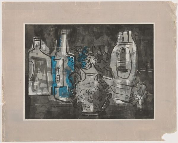 Stanley William Hayter made this print, Bottles, with etching on a plate. Look at the way Hayter’s etched the lines to create the composition, so many clustered together, a process. The texture in this piece comes from Hayter's distinctive etching technique, visible across the surface. Note the shadows, created with dense, almost frantic lines, versus the sparseness used to depict the bottles themselves. See that larger bottle towards the back? The light reflecting off the rounded edge seems to glow. It’s like Hayter’s built up the darks to make that highlight pop. Hayter was part of the Surrealist movement and was inspired by artists like Picasso and Miró. You can see some of their influence in his distortion of objects and simplified forms. It is a reminder that art isn't about answers but about inviting us to see the world in new, unexpected ways.