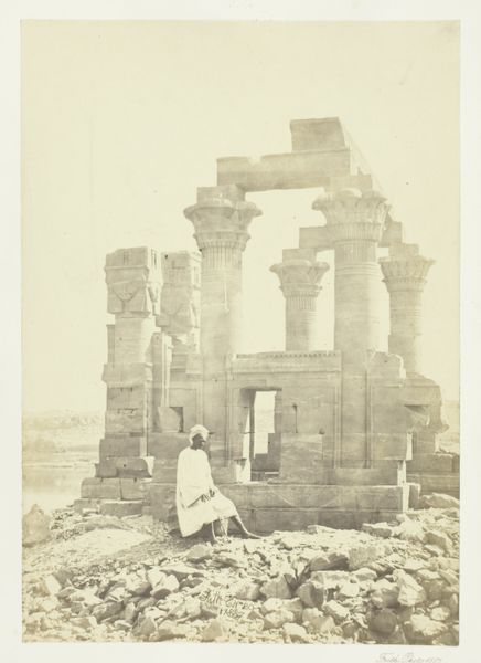 Editor: This collotype photograph, possibly from the mid-1920s, is by A.G.A. van Eelde and shows the ruins of Palmyra's main colonnaded street. I’m struck by how fragile and monumental these ruins appear at the same time. What are your thoughts on this image? Curator: Well, for me, it's vital to consider the means of its production, this collotype process itself. The very labor involved in creating such a print transforms our perception of these ancient stones. It ceases to be just about "ancient" history. We're seeing the intersection of material cultures, aren't we? The Roman stonecutters of Palmyra meeting the early 20th-century photographic technician, each dependent on the materiality of their crafts. Editor: So, it's about more than just documenting ruins? Curator: Precisely. Think of the collotype, a relatively inexpensive form of reproduction, making this image of Palmyra available to a wider public. What does that say about access, about who gets to "own" these ruins, even visually? We must consider how photography, especially reproduced as prints, influenced Western perception of ancient sites. Are we looking at objective records, or are we complicit in the ongoing Western consumption of a past produced through colonial and industrial systems? Editor: That's fascinating! I hadn't considered the materiality of the photograph as playing such a significant role. Curator: It’s fundamental. The collotype speaks to a world of mass production, which, while giving greater circulation, equally reduces cultural artefacts to mere images that people can easily acquire and consume. Now, look at how this process transforms stone and monument to something easily contained. It's something of a commodification. Editor: So, by studying the materiality of this print, we also unveil some troubling historical dynamics regarding labor, ownership, and access. It is interesting to think of that as something “site-specific”. Curator: Indeed. That's precisely the challenge materialist art history brings.