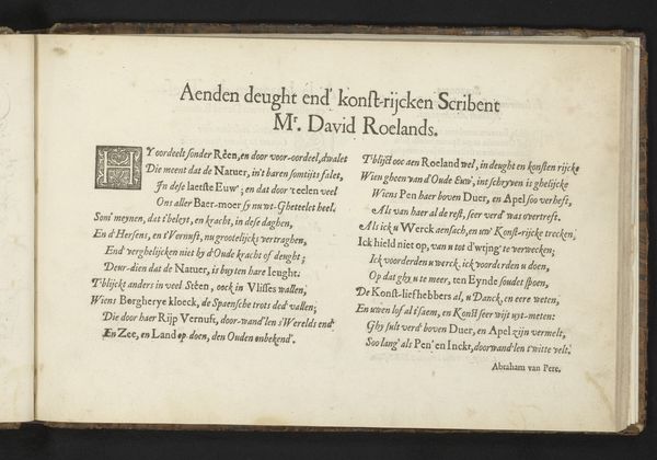Curator: My eyes are immediately drawn to the script; it is almost decorative! Is this piece of ephemera a song sheet? Editor: The Rijksmuseum attributes this to Romeyn de Hooghe. What we’re viewing is an engraved text sheet intended to accompany a print depicting the persecution of Protestants in France after the revocation of the Edict of Nantes. It’s dated to between 1686 and 1699. Curator: So, this text would have amplified the impact of the visual imagery. The combination aimed to elicit a strong emotional response. What symbols do you spot? Editor: Well, consider its baroque origins. The ornate typography evokes that era—but I cannot pretend to understand any of it! My emotional response is just of historical interest! The visual weight seems almost purely… informative. Curator: Perhaps this work aimed to solidify the viewers’ existing worldview—a baroque piece reinforcing established beliefs and prejudices of the day. Editor: Maybe! The Dutch were quite upset about what happened in France. What a cultural and theological cataclysm. What’s this script, exactly? Curator: It’s an early form of Dutch. As for imagery, look beyond the script. Think of what it evokes… Consider the themes: religious conflict, state persecution. This sheet offered viewers a structured way to interpret those events and find meaning within their own faith. Editor: Right. But look how *dense* it is—visually overwhelming, honestly. I keep thinking of information overload; of polemics and conflict, translated into text that demands to be studied rather than enjoyed. That sounds very Protestant, actually! Curator: Precisely! It mirrors that period’s emphasis on individual scriptural interpretation, reflecting a wider societal trend toward the printed word. Even in such troubling times! Editor: Well, thank goodness that particular era of textual oppression is in the rearview mirror. Ahem! Anyway. Anything else strike you? Curator: What endures most is its implicit testimony. An age defined by violent conflicts and intellectual revolutions echoes—preserved, not in a grand history, but this modest engraving. Editor: Yes. Even mundane objects—texts, pamphlets, broadsides—hold fragments of feelings, attitudes, and historical understanding that bigger objects never will. Thank goodness for museums!