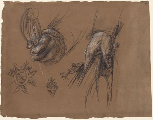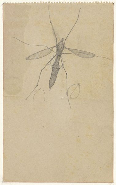 Curator: I find myself immediately captivated by this sheet of spider studies. It’s fascinating how simple pencil lines can bring these creatures to life. Editor: You've anticipated my own sentiments about this drawing. Looking at “Studies van spinnen” by Theo Nieuwenhuis, I see an echo of societal anxieties surrounding gender, especially concerning depictions of women as predatory or 'spider-like' figures in the late 19th and early 20th centuries. Given that this artwork was created between 1876 and 1951, we could consider how prevailing stereotypes about femininity might have subconsciously informed Nieuwenhuis' representations. Curator: Huh. I mostly see a cool exploration of form. Did you know the sheet is actually done on toned paper, which makes the delicate pencil work even more visible? Look closely, you'll notice he's not just sketching; he's experimenting with light and shadow, suggesting the spider's delicate structure. Editor: True. And the act of sketching itself--being the spontaneous nature of the artwork found in a personal sketchbook—it opens up inquiries of how artists, specifically in this time, worked within their studio. But I keep coming back to those inherent, pervasive gender dynamics. Do you suppose it’s coincidental that spiders—often symbols of creation, patience, but also entrapment—are his subject? Curator: Well, maybe he just liked spiders! He seemed to be capturing a realistic likeness of several different species here. But it also calls attention to nature—and natural sciences—as inspiration, even when considering their potential to intersect with the existing patriarchal power dynamics. Editor: Precisely. In connecting with philosophy, this makes me question how art and nature play roles of imitation to life; how they work together and diverge apart. Curator: In any case, whatever drew Theo to study these tiny creatures, he captured something of their essence—their fragility, their watchfulness. It gives us a peek into nature but more personally, also into the working process and eye of the artist. Editor: It’s amazing to see how much historical and cultural charge even a seemingly simple sketch can carry. It highlights the importance of contextualizing artistic expressions with sensitivity, understanding that any kind of artistic output can never fully escape socio-cultural environments and gender biases of its time. Curator: Spiders, nature, and art—who knew they held so much in their web?