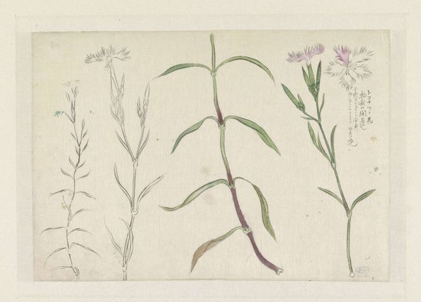 Anton Weiss created this delicate study of crocuses with watercolor, sometime in the first half of the 19th century. The composition presents three variations of the same flower, each distinguished by slight differences in their stage of bloom and orientation. Weiss employs a structured approach, focusing on the botanical form. Observe the meticulous rendering of each petal and leaf, capturing their texture and subtle gradations of color. The cool whites and greens are punctuated by the pale yellow and purple striations, creating a visual rhythm that is both soothing and engaging. The artist's emphasis on symmetry and balance is noteworthy. Each crocus is carefully placed to create a harmonious arrangement, reflecting a deeper interest in the underlying order of the natural world. This formal structure, coupled with the close observation of botanical detail, elevates the work beyond mere representation. It becomes a study in form, color, and the inherent beauty of nature's design.