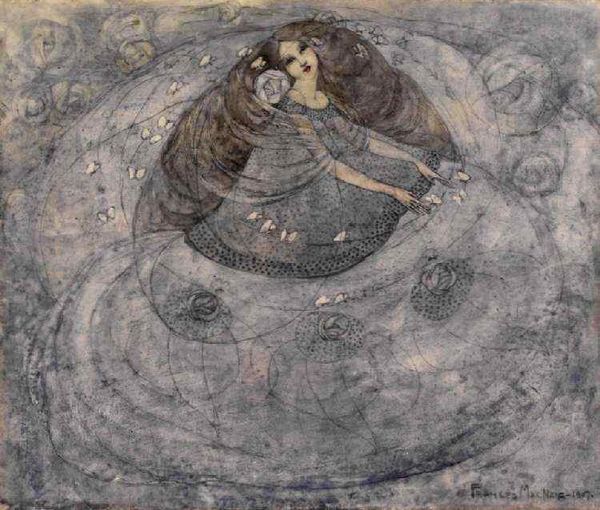 Frances Macdonald created Ophelia around 1896, using watercolor and pencil. Notice how the translucent watercolor is delicately layered, achieving a soft, ethereal quality. Macdonald’s rendering of fabric and foliage reflects the era’s fascination with naturalism, yet she avoids photo-realism, creating a dreamlike, symbolist image. Macdonald came out of the Glasgow School, which embraced all manner of making – furniture, metalwork, embroidery, and graphic design. These artists saw no hierarchy between fine and applied art, and that ethos is evident here. Her integration of meticulous drawing with flowing washes of color shows the influence of both botanical illustration and Japanese prints, traditions that were more typically associated with design and craft. Macdonald brings these influences together in a way that elevates the conventional medium of watercolor, blurring the boundaries between fine art and design. It's a testament to the value of exploring diverse materials and techniques in artistic expression.