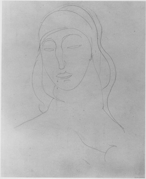 Editor: I'm looking at "Odalisque," a pencil drawing by Iosif Iser from 1926. The woman's gaze is really striking, and the minimalist lines create this kind of haunting but powerful feeling. What do you see in this piece? Curator: Well, first, the title itself – "Odalisque" – places this work within a loaded history. Traditionally, odalisques were depicted as eroticized figures within a harem, often by male European artists. But Iser, a Romanian Jewish artist, is engaging with this trope in the 1920s. Does the woman's expression convey compliance or resistance? The quick pencil strokes—do they reflect a quick, objectifying sketch, or are they something else entirely? Editor: That's interesting! I hadn't considered the historical context of the title so deeply. I focused on her eyes. You see the history of objectification but I am feeling that in this portrait she gains more control? Curator: Exactly! It is crucial to look at how power operates here. Consider her gaze; it is not inviting or submissive. Could Iser be reclaiming the image of the odalisque, offering a counter-narrative through a distinctly modernist lens? Does her slightly averted gaze suggest agency? How can we view her identity at the nexus of gender, history, and representation? Editor: I can definitely see how that reading adds a lot more nuance. Considering it within the context of that historical power dynamic shifts the whole meaning. Curator: Precisely! Thinking critically about those intersections lets us see the revolutionary potential within a simple pencil drawing. We cannot look at any drawing separately from cultural influences! Editor: This gives me a new appreciation for considering the background while engaging with artwork. Thank you! Curator: And thank you for bringing a contemporary eye to the piece! Considering all layers allows a painting to resonate with different viewers, offering renewed possibilities for dialogues through history.