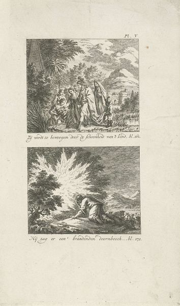 Editor: We're looking at "Het ontploffen van de Eendracht tijdens de zeeslag bij Lowestoft, 1665," a drawing, print and engraving in ink by Simon Fokke made between 1782 and 1784. It depicts a naval battle with a ship exploding. I’m struck by the almost theatrical rendering of the chaos. What catches your eye, and how does it relate to its historical context? Curator: The piece vividly captures the brutal reality of 17th-century naval warfare, though filtered through the lens of late 18th-century sensibilities. Consider that the depiction of such events served a didactic purpose, reinforcing national identity and maritime power. It wasn't just about illustrating a historical event but also about shaping public perception. Do you see how the explosion dominates the composition? Editor: Absolutely, the explosion is the focal point. It's dramatic but also stylized, even clean in a way. It doesn't feel…visceral. Curator: Precisely. This 'cleanliness' is telling. It reflects a shift in how such events were consumed. By the late 18th century, the focus moved from immediate experience to a more detached, ‘historical’ understanding shaped by print culture. Also, notice the composition: how the surrounding ships frame the central explosion? This constructs a very specific narrative of order versus chaos, or perhaps even, victory emerging from destruction. How might contemporary audiences have understood that narrative? Editor: I see your point! So it is less about a literal record and more about communicating broader ideas about Dutch power and resilience. Curator: Exactly. Understanding that subtle shift is key to interpreting art through a historical lens. Editor: This has totally reshaped how I see it. It’s much more than just a battle scene. Curator: Indeed, it's a constructed narrative about nationhood and power, packaged for public consumption.
