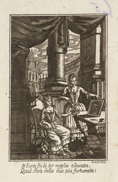 Curator: Today, we're looking at "Bedrogen vader / man uit bed gevallen," which translates to "Deceived father / man fallen out of bed." This print by Jan Goeree dates back to 1705 and is currently held in the Rijksmuseum collection. Editor: The first thing that strikes me is the rather grim humor of it. There's an almost cartoonish quality to the fallen man, sprawled so awkwardly. Curator: Precisely! Consider the socio-economic implications of printmaking at the time. Engravings like this, with their detailed lines and reproducible nature, allowed for a wider dissemination of morality tales. The production method democratized narratives and facilitated a specific visual culture, engaging the middle class. Editor: Yes, and what a narrative it is! The visual language employed is incredibly potent. We see two scenes, each carrying distinct symbolic weight. The upper vignette shows a man with a basin tending to what we assume is an ill child, while a couple embrace passionately in the background. Curator: That basket-like bed—the tangible nature of its construction! Wicker was readily available and cheap, hinting at a lower economic standing for the depicted family, the material existence becoming a vehicle of cultural inscription and values! Editor: And below, the result of his ignorance: a humiliated fall from grace, suggesting the consequence of prioritizing familial duty without seeing the betrayal. The slippers and overturned chamber pot amplify the disruption and shame. Jan Goeree knew very well how to use these visual cues to warn his audience about morality! Curator: And consider the lines Goeree employs, particularly within the bottom scene, their etching suggesting the instability of the man's social standing! It really asks the question of production, reproduction, viewership and moral authority of the Dutch baroque society. Editor: What’s remarkable, however, is how enduring such themes are. Even today, narratives around infidelity and social ridicule find expression across art forms. The imagery maintains its ability to evoke an emotional response and to act as cautionary reminder through its symbolic language. Curator: Well, exploring the processes behind artwork truly helps in its understanding! Thanks to the prints as a product of this production system, art’s social and historical implications have become apparent. Editor: I fully agree! Peeling back the layers of symbolic messaging really enriched the experience for me today. Thanks for shining light on it!