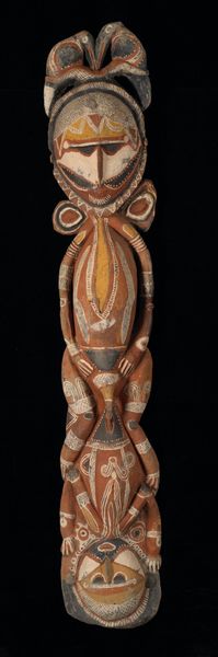 This wooden sculpture, titled 'Figure', resides here at the Minneapolis Institute of Art. Crafted by an anonymous artist, its form presents a fascinating study in verticality and symbolic representation. The figure is dominated by a slender, almost impossibly elongated body. Notice how the artist reduced anatomical forms to near geometric shapes. The breasts are defined by simple curves, and the legs are rendered as straight, parallel lines. The smooth, tactile surface invites contemplation on the material qualities of the wood itself. Consider how the artist manipulates scale and proportion to convey meaning, perhaps subverting conventional ideals of beauty or power. The sculpture resists easy categorization. Its stark simplicity invites a re-evaluation of established aesthetic norms and cultural expectations. This work encourages us to question fixed meanings and embrace the ongoing, evolving interpretations inherent in art.