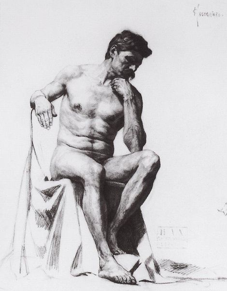 Editor: So, this engraving is after a sculpture of Antinous, a favorite of the Roman Emperor Hadrian, created by Giovanni Battista Piranesi. It strikes me as a rather somber depiction. There’s a sort of pensive quality in the way the figure’s head is bowed. What do you make of this Piranesi piece? Curator: Pensive is a wonderful observation. I wonder if Piranesi wasn’t just capturing the likeness, but also meditating on the nature of longing, beauty and loss – given Antinous’s early and rather tragic demise. Look at the crisp, clean lines... the *precision* of the rendering. It echoes the Neoclassical obsession with ideal forms, doesn't it? A reaching for an impossible perfection… Like trying to capture smoke, eh? Editor: So, the medium – being an engraving – reinforces this idealization through its sharp lines? Curator: Precisely! The very act of translating a three-dimensional form into a two-dimensional print strips away some of the sculpture’s inherent imperfections, highlighting instead the clarity of line and the intellectual pursuit of ideal form. What does his extended hand seem to signify for you? Editor: I'm not sure. Almost like an offering… or maybe a gesture of acceptance? Curator: Perhaps. Or, hear me out... a yearning? A palpable desire for something just beyond grasp. Food for thought, right? Editor: Definitely. I initially just saw a stoic figure, but thinking about the 'yearning' brings out a totally different feel in the portrait. Curator: These little mysteries are why I keep coming back to art... aren't they wonderful?