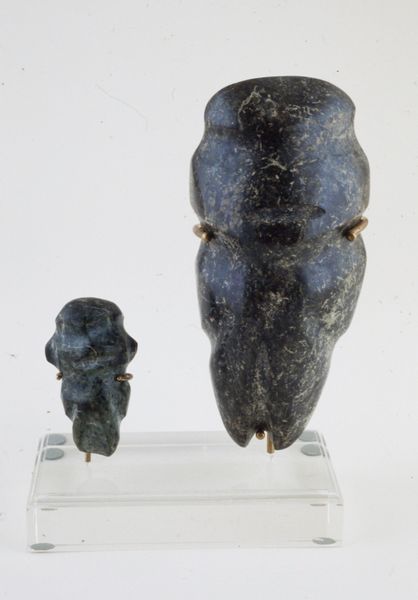 Curator: Here we have a set of "Head Pendants," dating back to roughly 30 to 395 AD, originating from the Carthaginian culture. These miniature sculptures, rendered in both glass and ceramic, are currently housed here at The Art Institute of Chicago. Editor: My first thought? Grotesque carnival masks, shrunk down! They possess this… potent, unsettling vibe. It’s as if someone captured a sneer in solid form. Tiny terrors, almost! Curator: The peculiar visages indeed raise questions of representation. These pendants, diminutive as they are, participate in the ancient tradition of portraiture while also reflecting potential protective or symbolic functions within their societal context. We must consider how gender, status, and perhaps even religious beliefs intersected in their creation and use. Editor: You're right, there's definitely some symbolic heft. Like talismans against… what? The blues, the grumps, the tiny daily annoyances of life? Maybe each swirl on the more stylized one holds a mini-curse! Ha! Okay, maybe not. But the other one—so realistic! I imagine the weight of it hanging… Curator: It’s vital to unpack the artistic conventions and material significance too. Glass and ceramic, in their durability and artistry, speak volumes about the cultural values placed on adornment, ritual, and identity expression. Think of the complex chemistry, the skilled craftsmanship required… these weren't mere baubles. Editor: Baubles! Never! Little attitude grenades, maybe. But okay, yes, skilled. When I really look, that other pendant, the detailed one, he's really got *character*. Almost a caricature but done with real feeling, you know? Wonder who he ticked off. Or charmed! Could be either. Curator: And precisely there lies the crux. It's our task to understand how Carthaginian societal structures influenced these characterizations. What power dynamics are embedded in the material, style, and perhaps even in their intended wearers? Who did they protect, and from what social or spiritual harm? These are not just pretty little objects; they embody the intricate tapestry of an ancient world. Editor: A heavy thought for such light, little things! Makes you wonder, doesn't it? What tiny piece of us will someone puzzle over in, say, two thousand years. Curator: Precisely. And hopefully, we’ve provided some perspectives to consider, inviting everyone to consider the weight and the stories encapsulated within these Head Pendants.