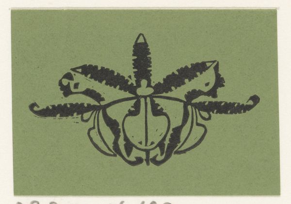 Curator: What a peculiar print! Is it just me, or do those birds seem about to duel? Editor: Indeed, it's an intriguing woodcut titled "Vignet met twee exotische vogels"—"Vignette with Two Exotic Birds." Gerrit Willem Dijsselhof created it around 1892. It’s part of the Rijksmuseum’s collection, a fine example of Art Nouveau with strong Symbolist undertones. Curator: Art Nouveau, alright. All swirls and svelte lines even in this stylized little battle. They've got serious 'tude! Is this green original, or a later addition? Editor: The green is part of the original print, likely a deliberate choice. Symbolism often used colour to evoke certain moods or ideas. Green could represent growth, but also envy. The intertwining necks – that might point to duality, maybe competition. Curator: It looks so incredibly decorative but also unnervingly confrontational. Almost like a coat of arms for warring flamingo tribes! Do we know if Dijsselhof designed other heraldic beasts or anything along those lines? Editor: While Dijsselhof wasn't primarily known for heraldry, he was deeply invested in decorative arts, interior design, and the Gesamtkunstwerk ideal. This print reflects the era's desire to elevate craft and blur the lines between fine art and applied design. The print was created during a period of intense artistic experimentation, challenging traditional hierarchies. Curator: It makes one wonder where this was originally meant to "land." It's fascinating how the aesthetic of that era permeated everything from high art to… well, apparently to dueling bird emblems. Editor: And maybe that's the beauty of it. That an artistic vision like that of Dijsselhof touches our sensibility more than a century after. Thank you for sharing your thoughts, I appreciate that.