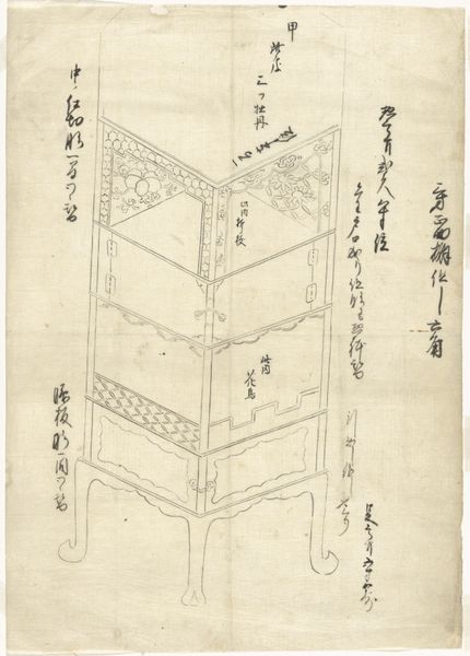This drawing by Pieter Schenk, from around 1700, presents two vignettes from Chinese history or legend, rendered with fine lines on a pale ground. The composition is split into two distinct scenes, each framed by an ornamental border that gives the work a structured, almost diagrammatic quality. The images themselves are minimalistic, focusing on the interactions between figures and their immediate surroundings. The upper scene, with its elevated platform and seated figure, contrasts with the lower scene’s more grounded, architectural setting. Schenk's use of line suggests a delicate balance between detail and abstraction, inviting us to consider how each element contributes to the narrative. Ultimately, the work invites contemplation on the interplay between cultural interpretation and artistic representation, reminding us that meaning is often constructed through the very act of seeing.