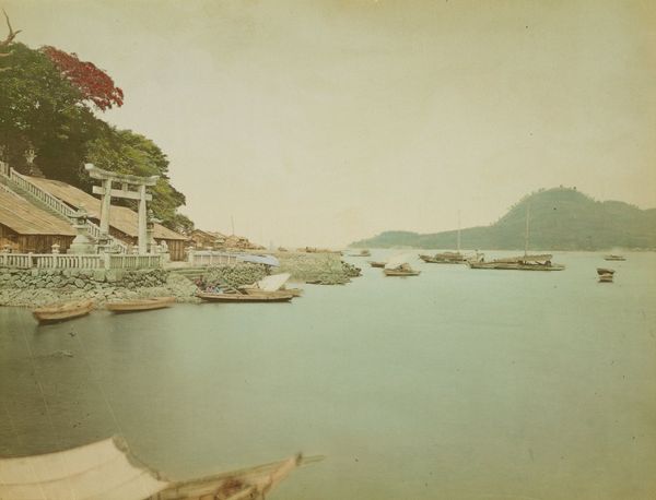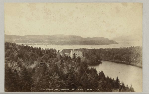 Carleton Watkins made this photograph, View on the Columbia, Cascades, using albumen silver print. Observe how Watkins frames the Columbia River through a meticulous arrangement of natural elements. The imposing trees on the left and the fallen tree in the foreground act as a repoussoir, guiding our gaze into the serene expanse of the river. This is a classic compositional technique found in landscape paintings, where the framing creates depth and pulls the viewer into the scene. The photograph's tonal range, from the dark, textured foliage to the soft, misty mountains in the distance, gives the landscape a three-dimensional quality. Watkins uses the camera to not just record the scene, but to structure it. This ordered composition reflects a desire to contain the vastness of the American landscape within a frame. It invites us to reflect on the interplay between nature and its representation, and how photography itself can be a tool for organizing our perception of the world.