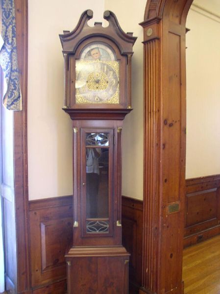 Curator: We're looking at a tall case clock, made by Bigelow, Kennard & Co. Its imposing height, nearly 8 feet, immediately commands attention. Editor: It feels like time itself has solidified into this grand, wooden form. I'm struck by the weight of tradition it carries. Curator: Absolutely. Consider how these clocks historically regulated not just individual lives, but entire communities. The pendulum’s swing determined work shifts, mealtimes, and social gatherings. Editor: And the materials themselves speak of status. The polished wood, the intricate metalwork – these were expensive to produce. Who had access to this kind of craftsmanship? Curator: The clock becomes a symbol of power dynamics, dictating the rhythms of life for some while others toiled. It makes me consider who benefited from the precise measurement of time. Editor: Precisely. This isn't just about telling time; it's about controlling labor, resources, and ultimately, people's lives. Curator: Examining the clock this way really reveals how an object can embody social and historical inequalities. Editor: Indeed. It encourages us to question whose time truly mattered, and at whose expense.
