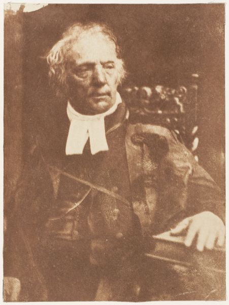 Curator: Here we have Denman Waldo Ross's portrait of Charles William Eliot, painted with oil on canvas. It now resides here at the Harvard Art Museums. Editor: It's striking how the figure emerges from such deep shadows, almost swallowed by them. What's he holding? Curator: That would be a scroll, a symbol of his academic achievements, perhaps? Ross clearly wanted to convey Eliot's intellectual gravitas. Editor: I'm curious about the material choices. The stark contrast highlights the labor of portraiture itself, the layers and process needed to build such a somber image of power. Curator: Yes, and there is a subtle warmth in his face amidst the darkness, suggesting Ross saw a certain humanity in Eliot. Editor: Indeed, this is a work where technique and subject create a particular mood. A study of the art of academic power. Curator: It leaves us pondering on the nature of legacy and how we wish to be seen, doesn't it?