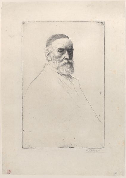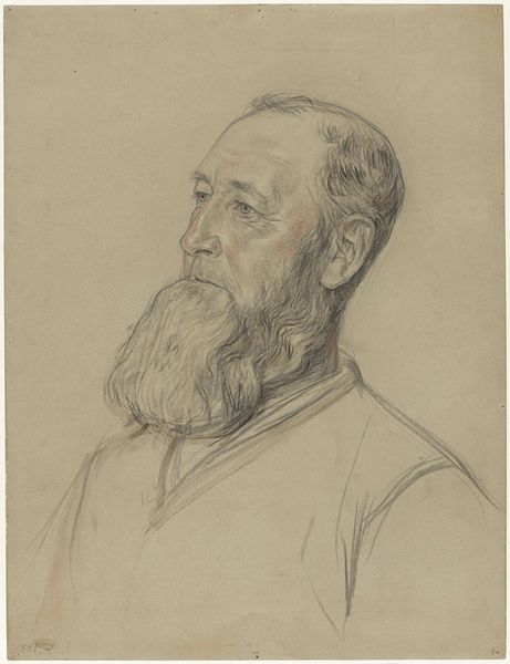 Alphonse Legros made this drawing, Portrait of an Old Man, using graphite on paper. Legros was a French artist who became a naturalized British citizen, teaching at the Slade School of Fine Art in London for many years. This portrait offers a window into the artistic conventions and social values of late 19th-century Europe. At the time, art academies and institutions played a crucial role in shaping artistic taste and legitimizing certain subjects. Portraiture, in particular, was associated with status and power. Legros's choice to depict an "old man" aligns with a broader artistic interest in portraying different social types. The man's upward gaze suggests a kind of social and spiritual yearning. Understanding the social context of this drawing requires looking into the history of art education, the market for portraiture, and the broader cultural fascination with physiognomy. Such research can reveal the complex ways in which art reflects and reinforces social norms.
