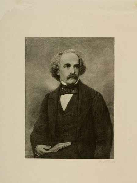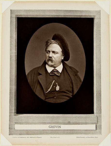 Editor: This is Ivan Kramskoy’s portrait of Ivan Goncharov. It’s difficult to define the material used as a starting point. Its palette relies on muted browns and grays, the lines feel precise, although its subject radiates some softness, what is your opinion on it? Curator: A rigorous formal analysis reveals a masterful deployment of chiaroscuro to sculpt Goncharov's features. Consider how the artist harnesses the play of light and shadow, articulating depth, lending an almost sculptural quality to the face. Note, too, the composition's geometry. Observe how the oval frame subtly echoes and contains the contours of the subject's head and shoulders. This framing, in turn, directs our gaze toward Goncharov's expression, investing the image with psychological intensity. What expressive effect results from Kramskoy’s chromatic restraint, in your opinion? Editor: I think its restraint helps to create an interesting sense of calm. By resisting high contrasts or bright colours, Kramskoy is guiding our vision in a deliberate way towards a few key features such as the central part of the subject's face and beard. How would that type of approach relate to the concept of Russian Realism? Curator: Precisely. And the realism here isn't just about mimicking external reality, it goes deeper. The muted tones, devoid of overt ornamentation, facilitate a stark encounter with the sitter's essence. Do you notice how every detail, every subtle gradient, serves to illuminate an internal landscape, creating not just a likeness, but an evocation of character and a glimpse of mind? Editor: Absolutely. It is an interesting observation that is easy to miss at a quick look. Thank you for the close analysis! Curator: My pleasure! It underscores the potency of purely visual languages when attempting to decode a work.