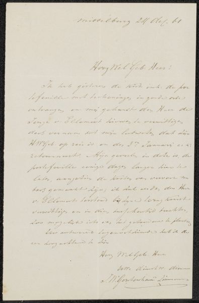 This is a letter, penned in the Netherlands on December 9th, 1860, by A. Willemsen to Christiaan Kramm. Its seemingly simple form belies a rich context within the 19th-century art world. The letter likely discusses artistic matters; perhaps a critique, an invitation, or news from the art scene. The very act of writing, the careful script, the attention to language – all speak to the institutional structures of the time. Consider the role of art academies, salons, and critical journals in shaping artistic taste and careers. How did these institutions influence what was considered "good" art? What power did critics like Kramm wield? Was Willemsen seeking validation or engaging in a critical dialogue? To truly understand this letter, we'd need to delve into archives, correspondence, and period publications. By examining the social networks and institutional frameworks of the Dutch art world in 1860, we can begin to decipher the meaning embedded within these elegant lines.
