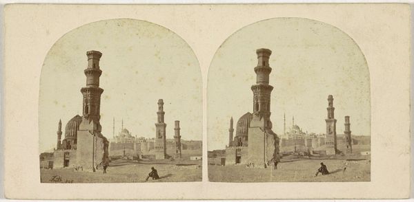 Joseph-Philibert Girault de Prangey created this Daguerrotype, titled Grand Minaret, Alexandria in 1842. The photograph’s vertical composition emphasizes the minaret's height and slender form, drawing our eyes upward along its textured surface. The interplay of light and shadow articulates the minaret's structure, contrasting the cylindrical tower with the geometric precision of its balconies and ornamentation. The monochromatic palette, punctuated by subtle tonal variations, enriches the architectural details, revealing the rough texture of the stonework against the pale sky. Girault de Prangey captured not just an architectural form, but also a cultural symbol. The minaret, as a sign, represents a point of intersection between the earthly and the divine. The angle and framing suggest a destabilization of established perspectives of architectural photography. The photograph challenges us to reconsider the relationship between representation and reality, structure and symbol, inviting a dialogue that transcends its historical context.