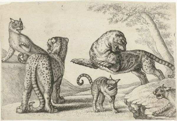 Antonio Tempesta made this print of a tiger using etching in the late 16th or early 17th century, a time when Europeans were expanding their global reach. It depicts a tiger in an exotic, imagined landscape, complete with a ship at sea and figures on horseback. Tigers, native to Asia, would have been largely unknown to Europeans outside of textual descriptions and the occasional imported specimen in aristocratic menageries. Tempesta’s print speaks to the early modern appetite for knowledge and mastery of the natural world. Prints like these, circulating widely, played a key role in shaping popular understanding of far-off lands and their creatures. The tiger, of course, became a symbol of untamed power, and of the complex relationship between humans and the animal kingdom. To truly understand this image, we can delve into period travelogues, natural histories, and emblem books. It's through this historical lens that we can appreciate the complex layers of meaning embedded in what might seem like a straightforward depiction of a tiger.