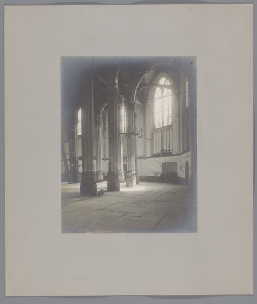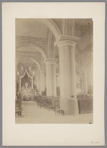 This photograph, 'Interieur van de Oude Sint-Nicolaaskerk te IJsselstein', captures the interior of the Old Saint Nicholas Church. It was created using early photographic techniques, likely involving a darkroom and the careful manipulation of light-sensitive materials. What’s interesting here is the level of detail achieved with such rudimentary means. The texture of the wooden pews, the smooth columns, and the overall weight of the architecture are all clearly communicated. This would have required a long exposure time, and immense patience, to capture the stillness of the church’s interior. Consider how the act of photographing the church transforms it. It’s no longer just a place of worship, but a subject to be documented and preserved. This image has a value beyond the simply representational, it evokes the cultural and social significance of the church. The photograph itself becomes a kind of artifact, reflecting the values and priorities of the anonymous photographer who made it.
