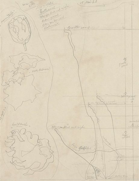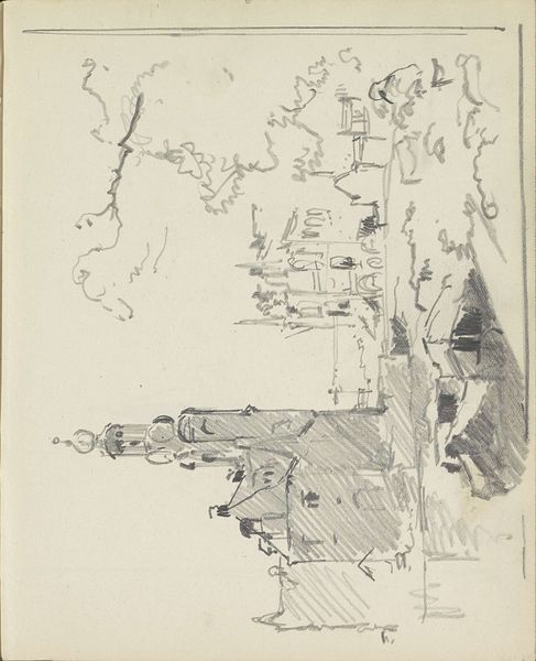 Curator: Welcome. We are standing before Cornelis Vreedenburgh's "Gezicht op een drukke straat," a pencil drawing on paper, dated sometime between 1890 and 1946 and currently held at the Rijksmuseum. Editor: It's immediate impact is one of restless energy—the sketchy lines suggest movement and the feeling of being surrounded by crowds in an urban space. It really does capture the quick, fleeting essence of city life. Curator: Yes, and consider how Vreedenburgh uses a predominantly linear style. The sketch prioritizes form and the delineation of space rather than employing shading for volume. There's a conscious structuring of the composition through these lines, especially with respect to the distribution of figures across the page. Editor: It's interesting that you point out that emphasis on form, since the lack of detail also has a democratizing effect. We see types—generic figures populating an urban scene. It speaks to the homogenization inherent in industrial and urban life, even then. You wonder who these people are, where they’re going, and what socio-economic forces are driving their movement. Curator: While I acknowledge your interpretation, it's crucial to consider the formal artistic traditions that influence this work. The quick lines can also be understood as the artist searching for the perfect form to capture on paper. It shows an artistic intent. It reflects Vreedenburgh’s concern with achieving an aesthetic result, playing with the interplay of light and shadow. Editor: I don’t deny the technique on display. Yet I believe such works should be considered from various perspectives. What does this type of drawing mean at a time of such intense urban growth and migration? Doesn't that historical reality give extra depth? Curator: Certainly, historical factors influence any artist, but I caution against prioritizing context at the expense of form, which ultimately creates meaning through design. Editor: I suppose it comes down to a matter of emphasis. But it's hard not to think about this street scene, so deftly captured, as more than just the rendering of form. It shows the human cost and constant change inherent to a vibrant yet often indifferent modern landscape. Curator: Fair enough. Perhaps both approaches offer paths toward greater understanding and interpretation.