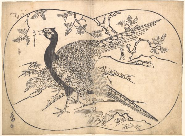 Hishikawa Moronobu created this print of cranes on paper in the late 17th century. This work exemplifies ‘ukiyo-e’, a type of Japanese printmaking that flourished during the Edo period. These prints were typically made through woodblock printing, a labor-intensive process requiring skilled artisans to carve the image into woodblocks, apply ink, and then press the block onto paper. Moronobu's designs, rendered in ink on paper, highlight the stark contrast and delicate lines achievable through woodblock techniques. The evenness of the blacks shows an intimate understanding of inking, pressure, and suitable papers. The production of ukiyo-e prints was closely tied to the rise of a merchant class and increasing urbanization. They were relatively affordable, meeting the demand for art among a broader public, quite unlike traditional painting. The images captured scenes of daily life, landscapes, and popular culture, reflecting and shaping the tastes of their time. Consider the collaborative nature of printmaking, and the ways in which the economics of production influenced both the subjects depicted and the stylistic qualities of the prints themselves. This offers insights into the intersection of art, commerce, and society in Edo-period Japan.